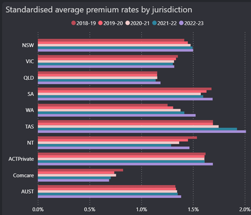 While the 2025 report, has not yet landed, the 2023 report tells the story. When it comes to premiums, Queensland’s premium as a percentage of payroll is the lowest of any state, that is despite key benefits of the Queensland scheme, including access to common law damages and cover for journey claims to and from work and during recesses.