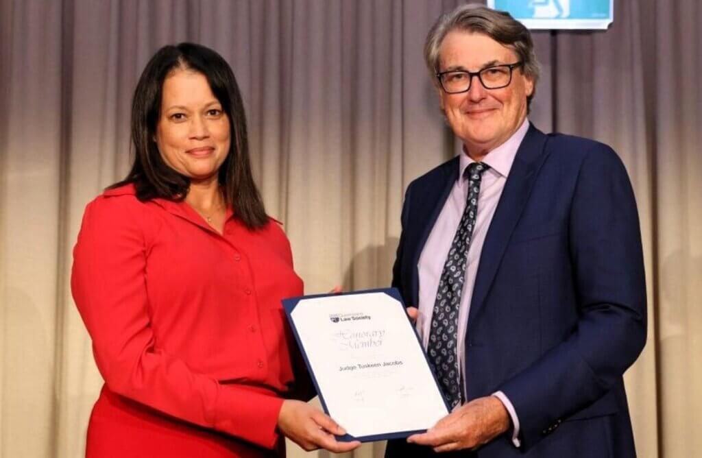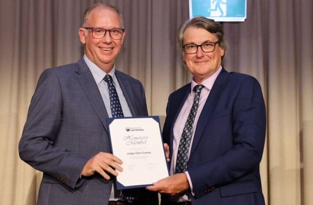 For outstanding service to the profession, Honorary Memberships were presented on the night by new President Peter Jolly to His Honour Judge Glen Cranny, Her Honour Judge Tuskeen Jacobs and His Honour Judge Christopher Kahler.