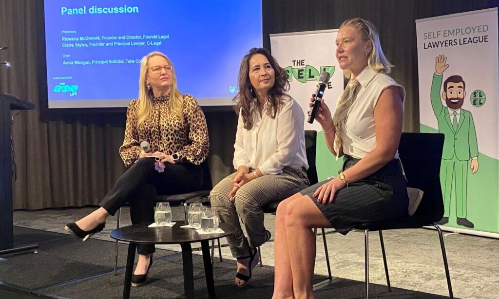 C Legal founder and Principal Lawyer Claire Styles, Foundd Legal Director Rizwana McDonald and Take Control Legal Principal Solicitor Anna Morgan, who chaired the panel, shared their thoughts on marketing strategies, business models, AI and wellbeing at the Customs House event.